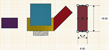 Look at the model and/or the images above. The arms do not need to be precise measurements. Notice how one arm is a square (purple) and its purpose is to allow a bolt to connect the Upper & Lower Steering Column together (simple!). The second arm is is at an angle and connects the Steering Column to the Steering Rack. If you look at the images below, you will see that I made it from one rectangle. So make it and rotate it. Now connect the square and the rectangle to the ballbearing structure. It is ok to punture the hole where the ball bearing will go because when you "Group" it, that piece will disappear.